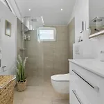 This property comes with a bathroom with a shower and a washing machine.